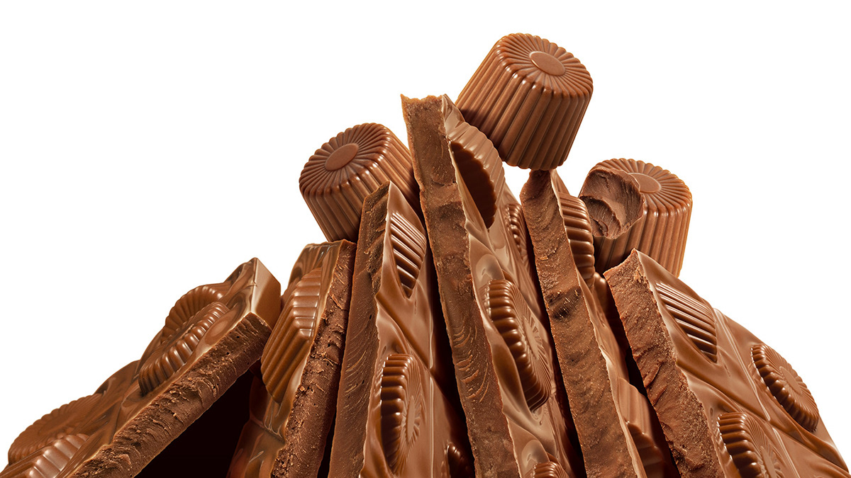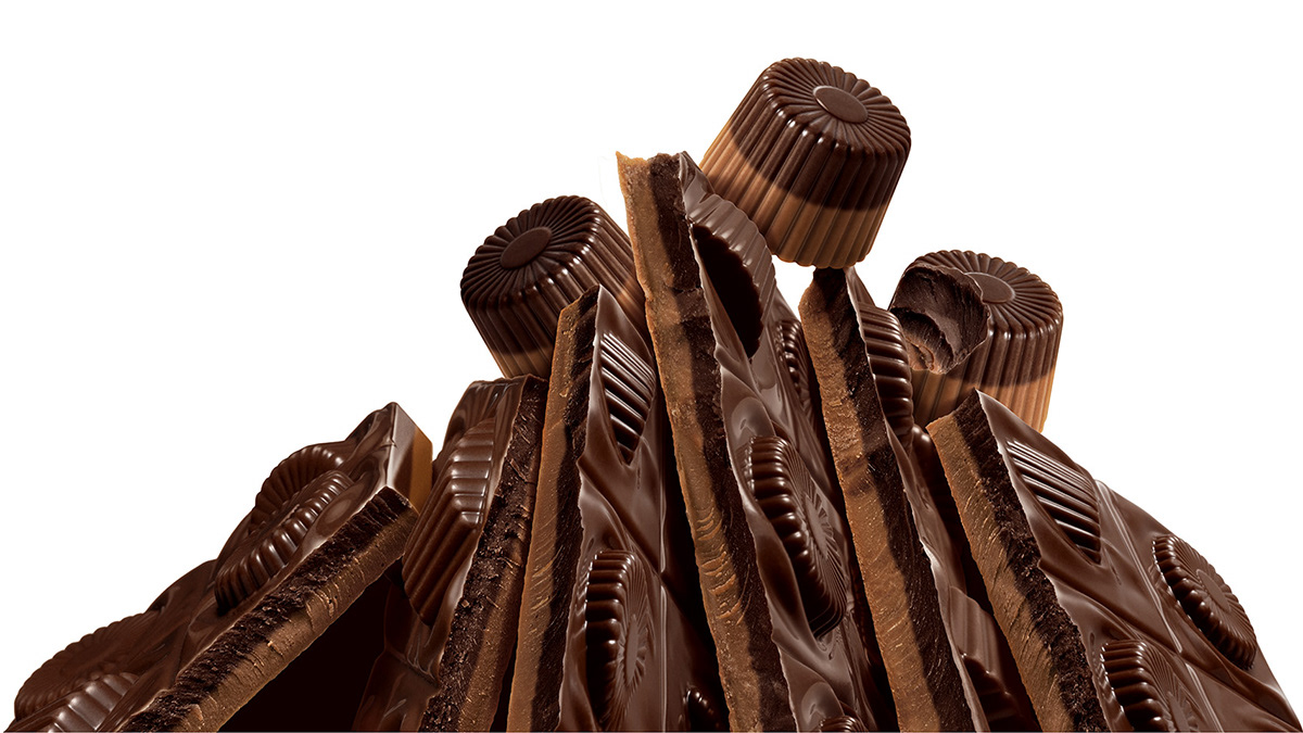 Photo-realistic illustrations of Nestlé Alpino chocolate bars positioned to mimic the Alps Mountains for packaging and promotional use. Design by Dick & Dave studio.